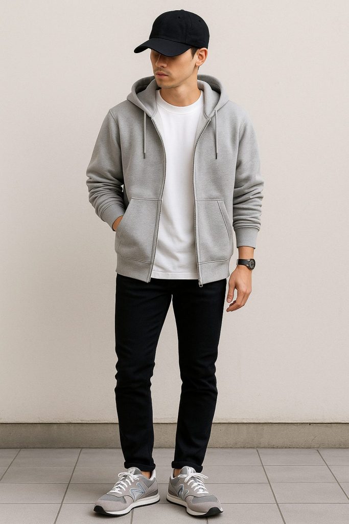 グレーのニューバランス565は、落ち着いた雰囲気と合わせやすさが魅力です。メンズコーデとしては、シンプルな白のTシャツに、ブラックのスキニージーンズを合わせるとスタイリッシュにまとまります。トップスにライトグレーのパーカーを羽織れば、カジュアルながらも洗練された印象に。アクセサリーはシンプルな腕時計やキャップを選び、全体のバランスを取ると良いでしょう。これで、休日の街歩きやカフェ巡りにもぴったりなコーデの完成です。